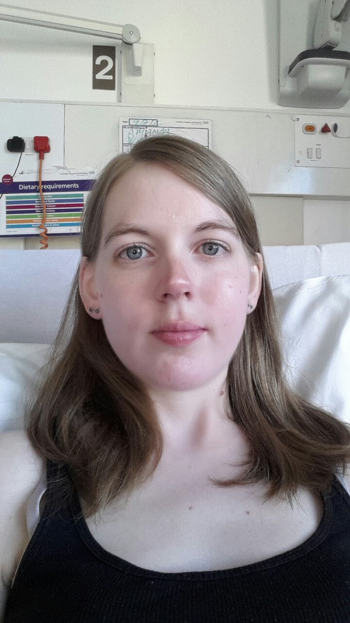 Hospital selfie! I look a little tired in this one but I should sleep better tonight.