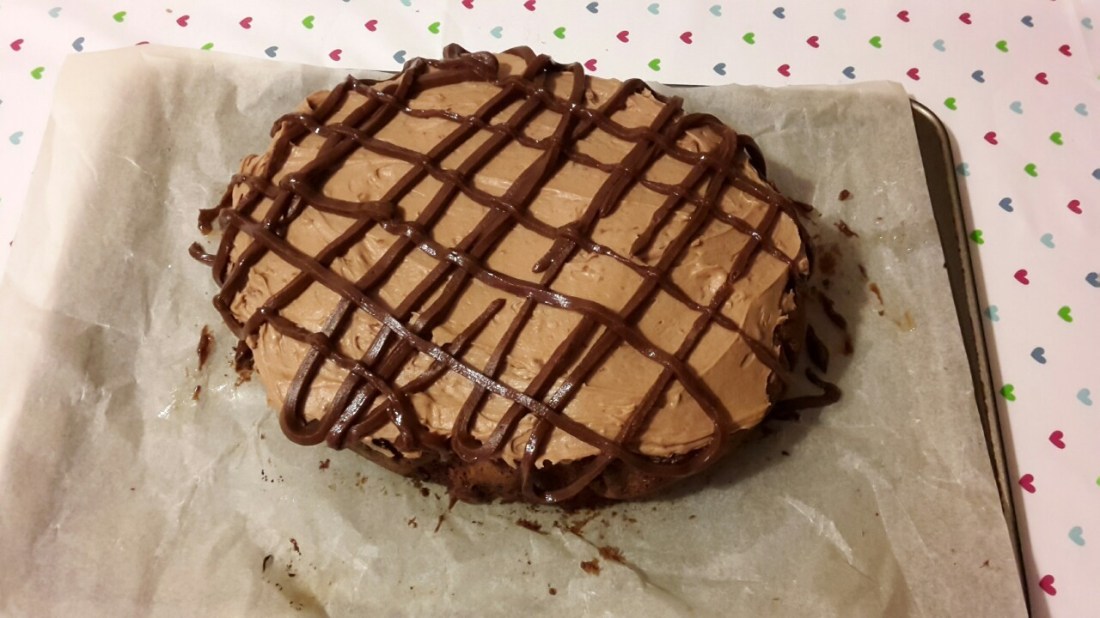 Another picture of the brownies. I’ve just added the chocolate sauce. I’ll cut them up later.