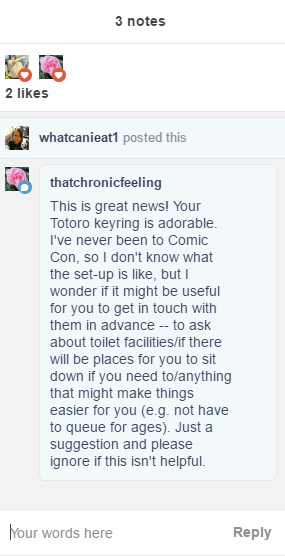 I made it home in one piece! The London Comic Con was amazing and, even though I’m so very tired from all that walking, it was worth it. I cosplayed as Misty from Pokemon for the first two day but chose to just wear civvies for the last day. This was mostly because I only had two yellow tops instead of three (and it was very warm all weekend) but also because I found that, although having my ostomy bag tucked into my waistband wasn’t uncomfortable, it was very hot under the bag so it did sometimes make me think it was full and/or leaking at times. So, for the last day, I just wore it untucked and with a cover on which was a bit cooler.